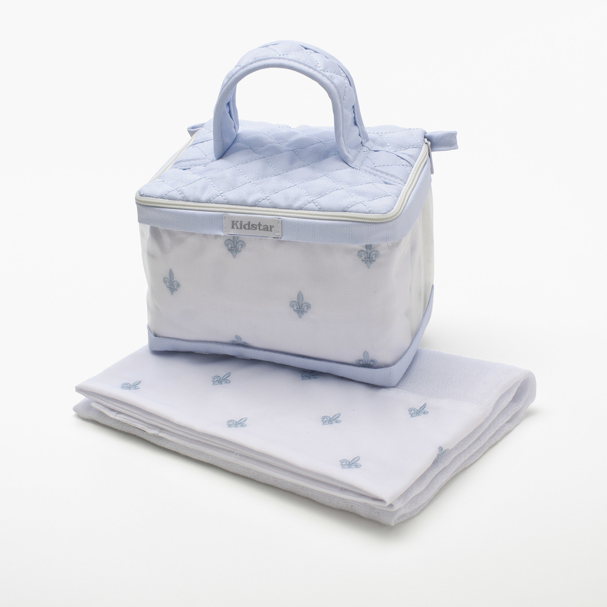 Necessaire de tecido com 3 fraldas de ombro. Medida fraldas: 70 x 70cm cada Instruções de Lavagem: - Lavar à mão - Não alvejar - Não secar em tambor - Passar ferro até 150°C - Secagem à sombra